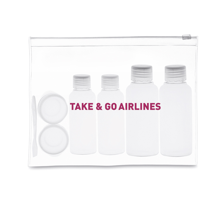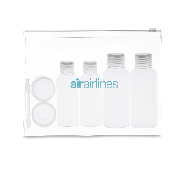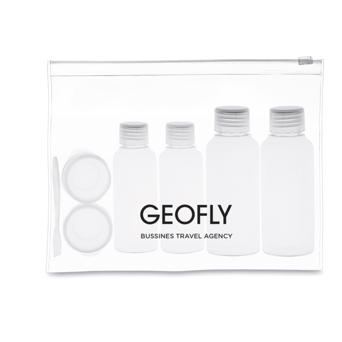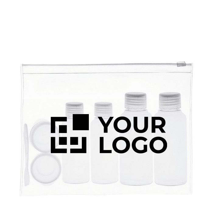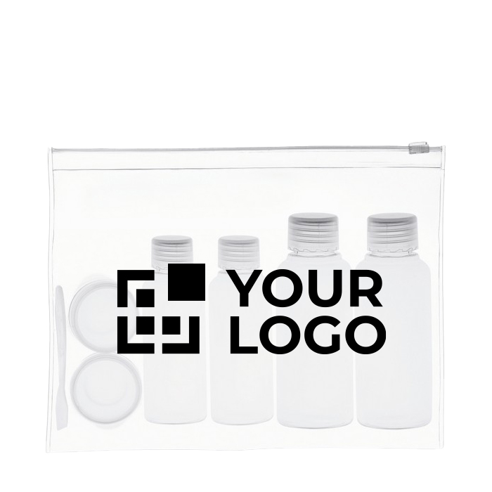 Neceser de viaje fabricado con materiales duraderos, ideal para empresas que buscan practicidad y personalización. Incluye seis envases vacíos de diferentes capacidades: 100 ml, 50 ml y 10 ml, perfectos para transportar líquidos de manera segura y conforme a las normativas de viaje. Cada botellita puede ser personalizada con el logo de su empresa, ofreciendo una oportunidad única para reforzar la identidad corporativa. El servicio Express garantiza una entrega rápida, adaptándose a las necesidades urgentes de su negocio. Ideal para regalos corporativos o kits de bienvenida en eventos empresariales.