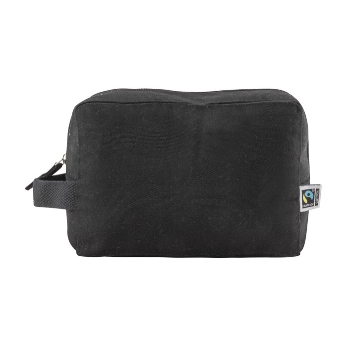 Neceser fabricado en algodón Fairtrade negro, diseñado para combinar elegancia y sostenibilidad. Con un gramaje de 220.0, ofrece una textura robusta y duradera, ideal para el uso diario. La inclusión de un asa lateral facilita su transporte, convirtiéndolo en un accesorio práctico para cualquier ocasión. El sello y garantía Fairtrade aseguran que el producto cumple con estándares éticos y responsables, lo que lo hace perfecto para empresas comprometidas con el comercio justo. Ideal para regalos corporativos o como parte de una estrategia de marketing que resalte valores de responsabilidad social.