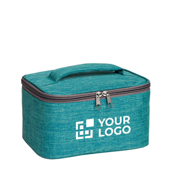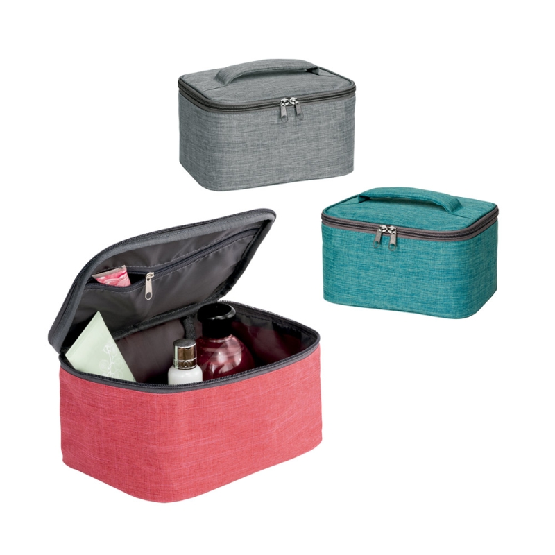 Un neceser amplio con asa acolchada y un interior forrado ofrece una solución elegante para organizar tus artículos de cuidado personal o belleza. Su diseño en tejido jaspeado aporta una estética profesional, adecuada para promociones en el sector de la belleza y el bienestar. Además, cuenta con un bolsillo interior con cremallera, lo que permite una organización más eficiente de los objetos pequeños. Este detalle adicional es crucial para mantener el orden y facilitar el acceso rápido a los productos. Al regalar este neceser, tu marca se posiciona como una empresa que presta atención a los detalles y al confort de sus usuarios.