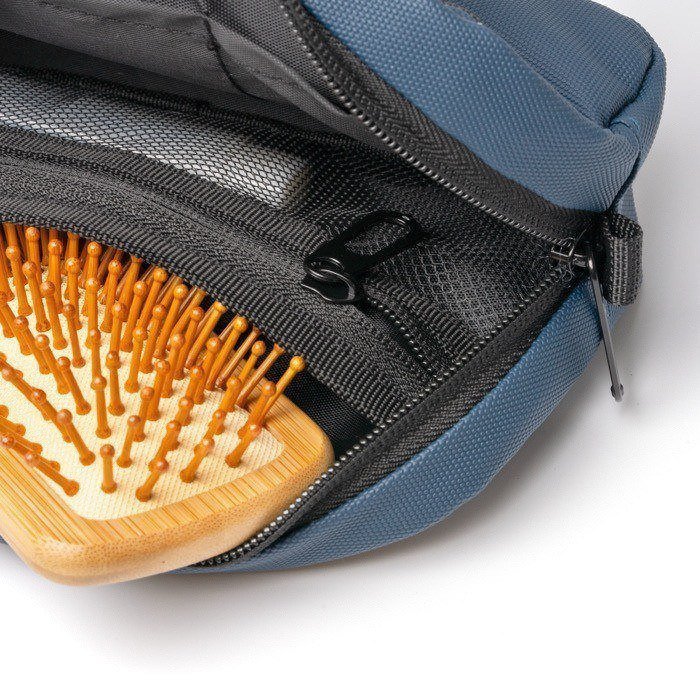 Neceser de piel sintética con cierre de cremallera y tirador para un acceso cómodo. En el interior incorpora un compartimento con bolsillo también con cremallera, pensado para separar objetos pequeños de los de mayor tamaño y mantener el contenido ordenado. En el exterior incluye un asa de mano y otra de transporte preparada para trolley, ambas en color negro, que facilitan el traslado en viajes y desplazamientos de trabajo. Opción práctica para acciones de RRHH, ferias o bienvenida a nuevos empleados.