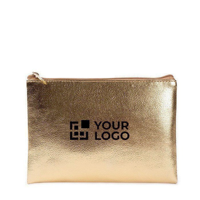 Un neceser compacto de cuero sintético con un acabado dorado y cremallera a juego te ofrece un accesorio distintivo que atrae miradas. Confeccionado en PU de 350 g/m², libre de sustancias nocivas y con certificación REACH, combina durabilidad y estilo. Esto asegura que tu empresa se asocie con prácticas responsables y sostenibles. Ideal para promociones de lujo o eventos exclusivos, es un regalo que aumenta la visibilidad de tu empresa, proyectando una imagen de distinción y calidad. Deja una impresión duradera y posiciona tu marca en la mente de quienes lo reciben.