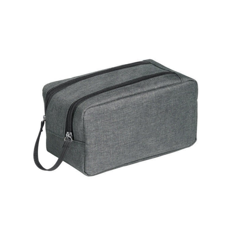 Una bolsa de aseo con doble cremallera te ofrece una organización eficiente y duradera para tus viajes. Fabricada con tejido de alta densidad, este accesorio es robusto y práctico para llevar tus artículos personales. Con un asa y un interior forrado, tú lo utilizarás en tus desplazamientos, manteniendo tus enseres ordenados y accesibles con facilidad. Tu marca se asocia con la fiabilidad y proyecta una imagen de empresa que valora la comodidad y la resistencia en los productos que ofrece a sus clientes.