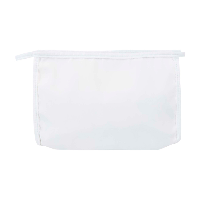 Bolsa neceser de poliéster reciclado con certificado GRS (Global Recycled Standard), pensada para llevar artículos de aseo en formato viaje y pequeños accesorios sin ocupar espacio. Su diseño compacto ayuda a organizar lo imprescindible en desplazamientos, ferias o jornadas fuera de la oficina. El tejido aporta resistencia para el uso diario y permite un manejo cómodo en mochila o maleta. Opción práctica para acciones de bienvenida, eventos corporativos o regalos de empresa con uso recurrente.