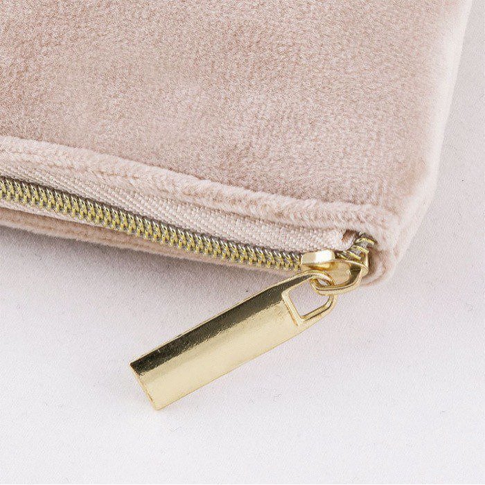Neceser de terciopelo con detalles dorados en la cremallera y tirador