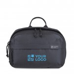 Neceser moderno y sostenible fabricado con tejido reciclado y correas procedentes de botellas de plástico. Dispone de bolsillos frontales con cremallera para los artículos básicos de viaje, un compartimento principal amplio con cierre de cremallera y bolsillos interiores para mantener los artículos de tocador organizados. Incluye asa de mano superior para facilitar su transporte.
