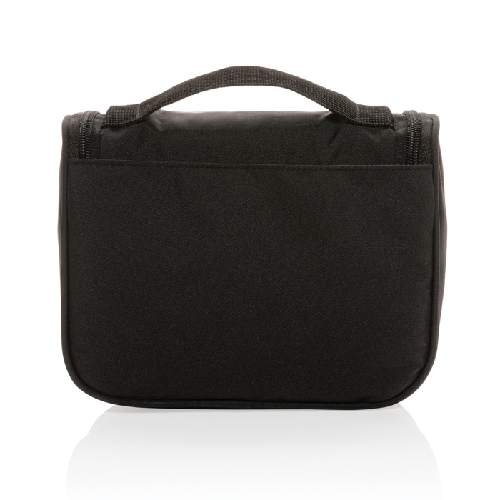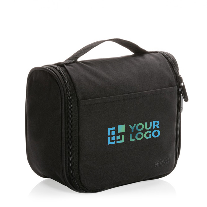 El neceser Lohan AWARE™ de Swiss Peak está fabricado con poliéster 100% reciclado, ofreciendo una solución sostenible y práctica para quienes viajan con frecuencia. Su diseño incluye un compartimento principal espacioso, cuatro subcompartimentos para una organización eficiente, dos bolsillos de malla abiertos y un bolsillo de malla con cremallera para artículos más pequeños. Un gancho integrado permite colgarlo fácilmente en cualquier lugar, optimizando el espacio. Con una capacidad de 2000 ml, es ideal para transportar productos de higiene personal de manera ordenada. Suministrado en bolsa y a granel, es perfecto para empresas que buscan regalos corporativos sostenibles o para incluir en kits de viaje para empleados.