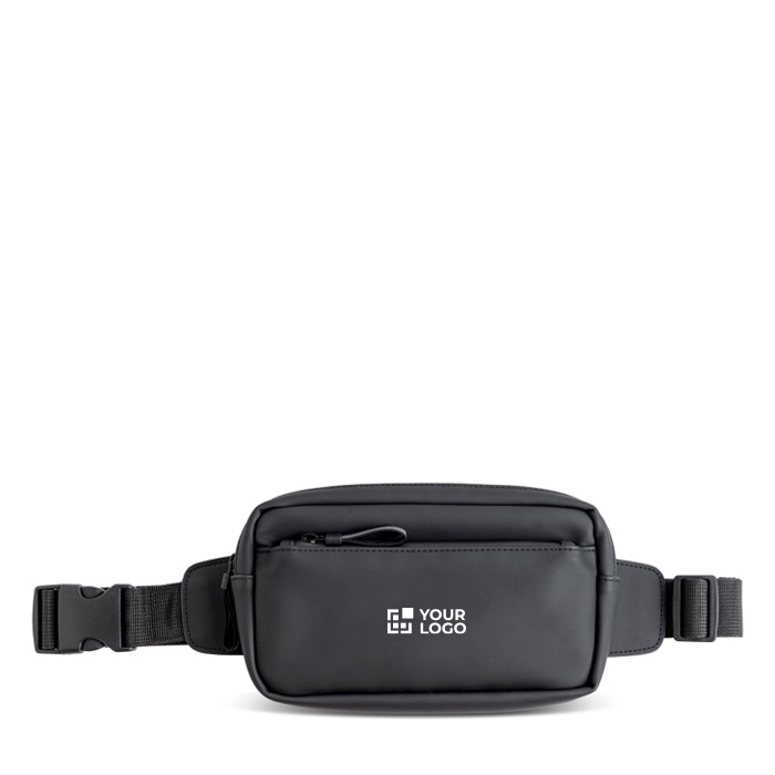 Riñonera/bandolera de cuero sintético reciclado, ideal para empresas que valoran la sostenibilidad. Fabricada con cuero sintético resistente al agua, protege tus pertenencias incluso en condiciones climáticas adversas. Cuenta con dos compartimentos espaciosos, ambos con cremalleras resistentes al agua y detalles reflectantes que aumentan la seguridad en entornos de poca luz. El compartimento principal incluye un bolsillo interior, perfecto para objetos pequeños que necesiten estar a mano. Ligera y versátil, esta riñonera combina estilo y funcionalidad, siendo una opción práctica para el día a día. Además, el servicio Express asegura una entrega rápida. Ideal para equipos de trabajo que necesiten movilidad o como regalo corporativo.