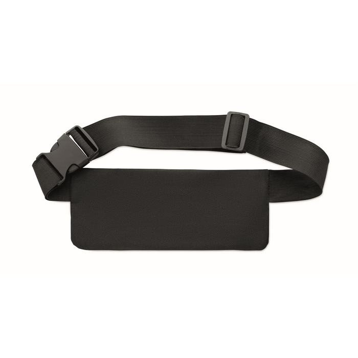 Riñonera de running fabricada en poliéster RPET 600D con refuerzo de PU, pensada para llevar lo imprescindible sin estorbar. Incluye compartimento principal con cremallera para móvil o cartera y un bolsillo lateral con cremallera para llaves u objetos pequeños. La correa elástica ajustable permite adaptarla a distintas tallas y mantenerla estable durante el movimiento. Ligera y duradera para uso frecuente. Opción práctica para equipar a equipos en eventos deportivos o acciones de marca.