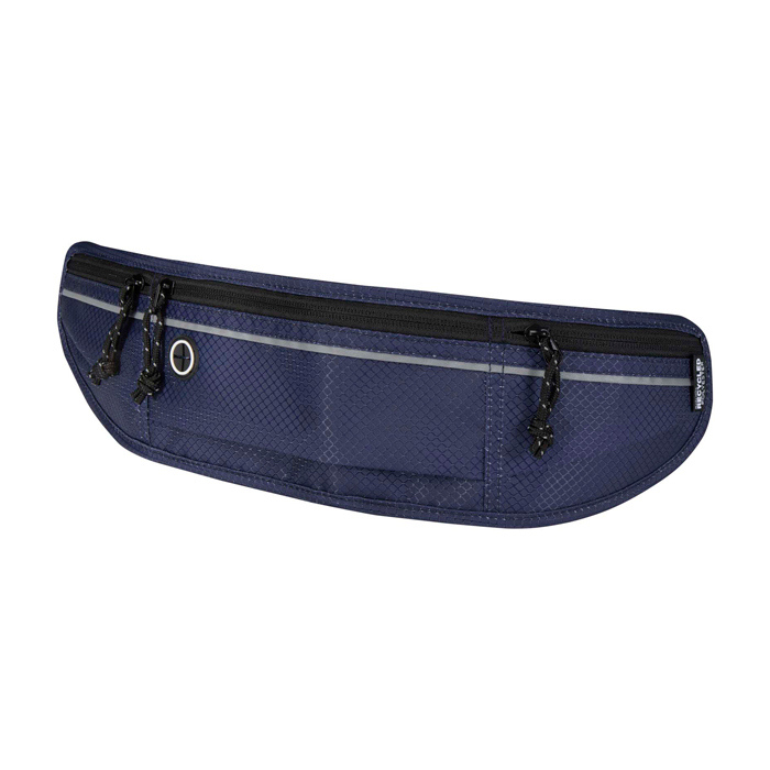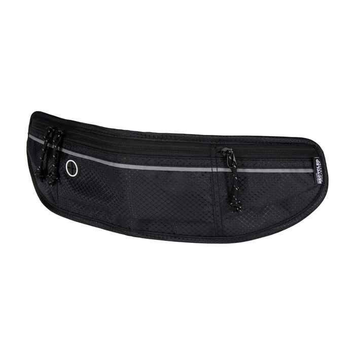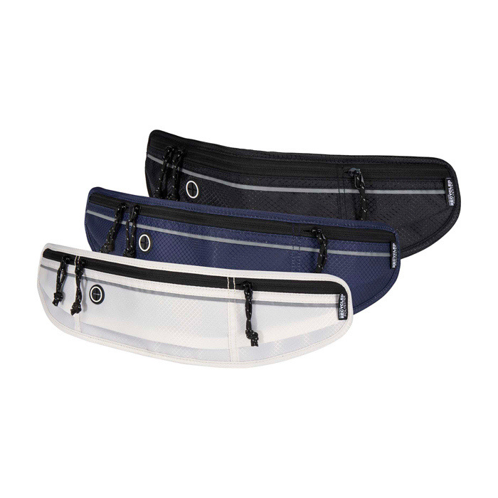 Riñonera para correr fabricada en tejido antidesgarros reciclado, con certificado Global Recycled Standard (GRS), ideal para empresas que valoran la sostenibilidad. Su acabado repelente al agua protege los objetos personales de la humedad, mientras que el forro RPET también certificado GRS, refuerza su compromiso ecológico. Tres bolsillos con cremallera permiten organizar eficientemente teléfono, auriculares y llaves. La parte trasera de malla ligera mejora la transpiración, reduciendo la acumulación de sudor. La cintura elástica ajustable garantiza un ajuste seguro y cómodo. Con un gramaje de 420.0, es robusta y ligera. El servicio Express asegura una entrega rápida. Perfecta para eventos corporativos o como parte de un kit de bienvenida para empleados.