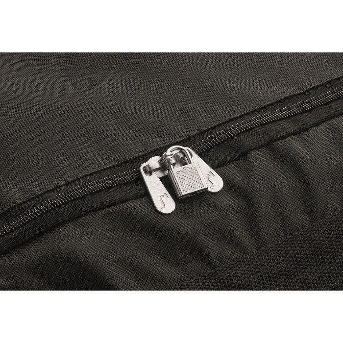 Bolsa trolley de poliéster 600D RPET pensada para uso profesional en desplazamientos y eventos. Incluye bolsillo frontal con cremallera, dos bolsillos laterales y tres bolsillos interiores para organizar documentos, accesorios y material de trabajo. Los tirantes acolchados permiten llevarla como mochila cuando conviene, y el bastidor de doble tubo con 2 ruedas facilita el transporte en aeropuertos o ferias. Opción práctica para kits corporativos, acciones de bienvenida o equipación de equipos.