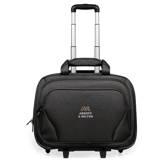 Este trolley ejecutivo transmite elegancia y profesionalidad. Confeccionado en microfibra con detalles en plástico reciclado, es un regalo excepcional para tus clientes y empleados más valorados. Su sofisticado diseño y sus múltiples compartimentos, ofrecen una solución eficiente tanto para los viajes y visitas de negocio como para la promoción móvil de tu empresa. El bolsillo para portátil de 17 pulgadas y el compartimento adicional de 10 pulgadas para tablet aseguran la protección de tus dispositivos durante cualquier trayecto, mientras que la posibilidad de llevarla con el asa de mano de tela o con el asa telescópica de arrastre eleva tu experiencia de uso. Todo ello con la posibilidad de contar con un servicio de entrega rápido.