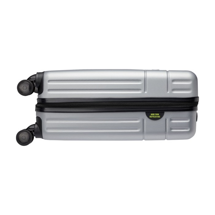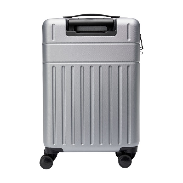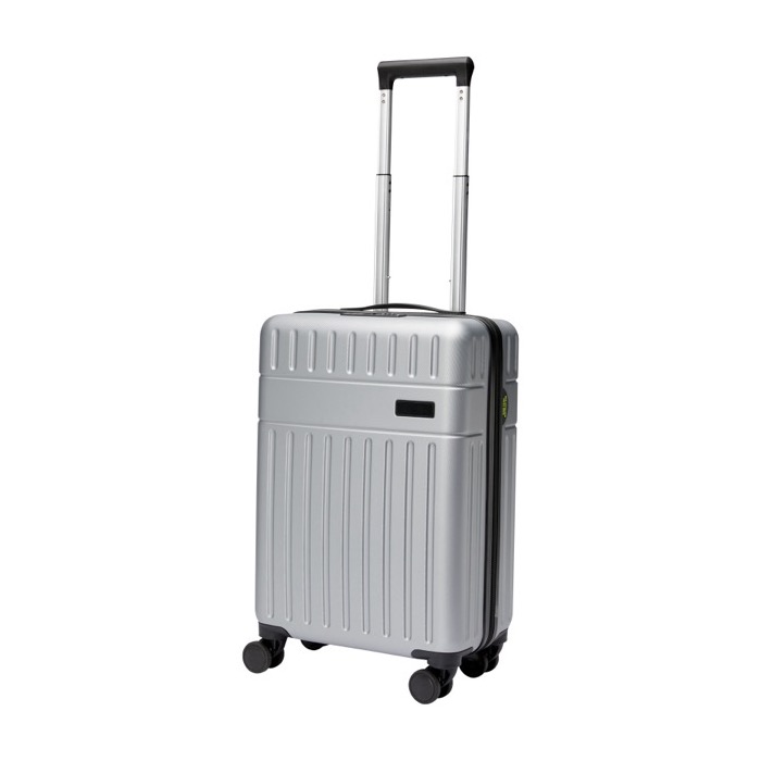 Cuando tus trabajadores viajan regularmente, un trolley de cabina de 20 pulgadas y 40L de capacidad es una elección eficiente y consciente. Fabricado con plástico reciclado resistente a los impactos y forro RPET, demuestra tu compromiso con la sostenibilidad y cuenta con certificación GRS, incluida la impresión. La estructura de aluminio de doble tubo y las cuatro ruedas con giro de 360 grados aseguran un desplazamiento sin contratiempos. La cerradura de combinación TSA integrada y el asa de fácil agarre proporcionan seguridad y comodidad. Equipar a tu equipo con este trolley refuerza la imagen de tu marca como moderna y responsable.