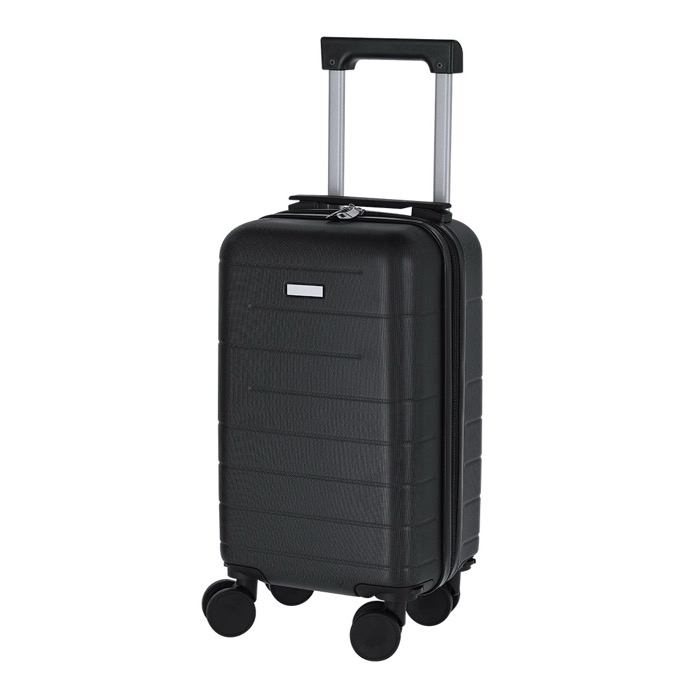 Trolley rígido de plástico con 4 ruedas giratorias extraíbles, pensado para viajes de negocio y desplazamientos frecuentes. Incorpora cierre de cremallera con doble tirador para un acceso cómodo y seguro. El interior incluye compartimentos para organizar ropa, documentación y accesorios sin perder tiempo al abrirlo. Su formato compacto y la posibilidad de retirar las ruedas facilitan llevarlo como equipaje de mano según la operativa de cada trayecto. Incluye bolsa para guardar las ruedas, útil en controles y transportes corporativos.