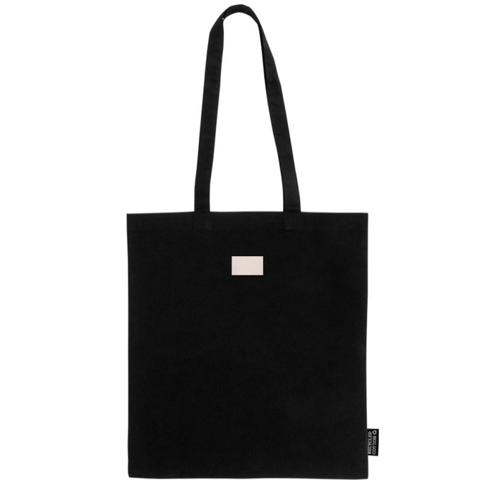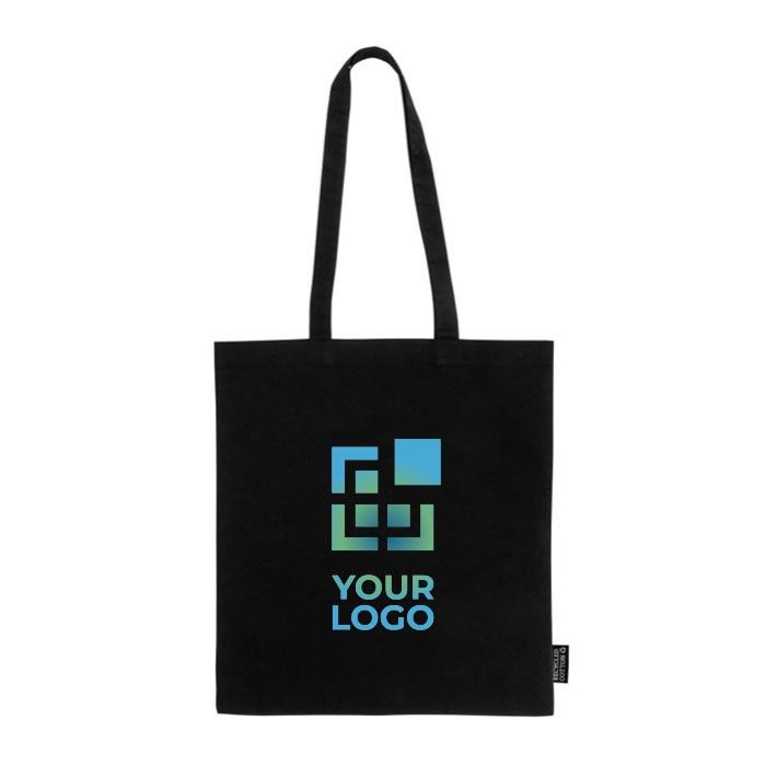 Una bolsa de 100% algodón reciclado con asas largas te permite ofrecer un obsequio que combina estilo y compromiso ambiental. Su gramaje de 180 g/m2 garantiza durabilidad para el uso diario y profesional, transportando documentos o pertenencias con seguridad. El color negro confiere una estética elegante, adecuada para cualquier contexto corporativo o personal. Al personalizarla con tu logotipo, tu marca se asocia con la calidad, la responsabilidad ecológica y un toque de sofisticación, fortaleciendo la percepción de tu empresa y la lealtad de quienes la reciben.