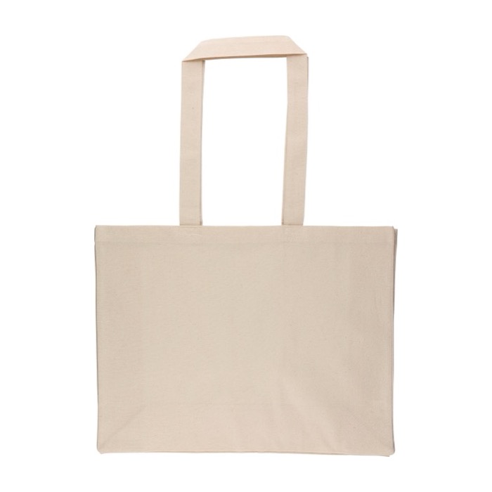 Bolsa de algodón natural con asas largas para hombro y refuerzo: gana capacidad y presencia de marca en ferias, formaciones o entregas internas. ¡Añádele tu logo!