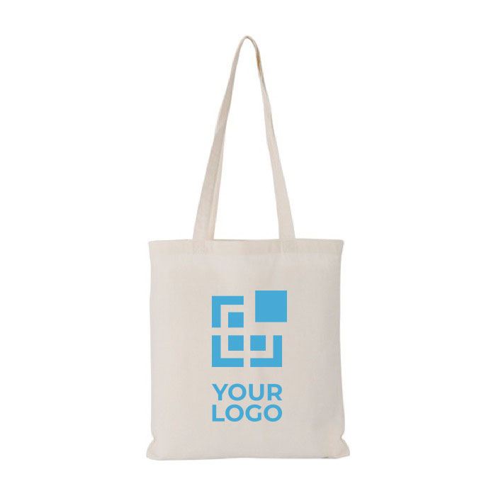 Aumenta la visibilidad de tu marca con esta bolsa estilo tote bag y su gran superficie personalizable a dos caras. Entre sus diversas ventajas, te conquistará por la resistencia de su tela fabricada en algodón, sus largas asas y el color beige de su diseño, el cual le aporta naturalidad y sencillez. En resumen, un producto que brilla por su comodidad, simplicidad, utilidad y por la flexibilidad de personalización que ofrece, tanto en técnicas de marcaje como en ubicación y dimensión del logo.