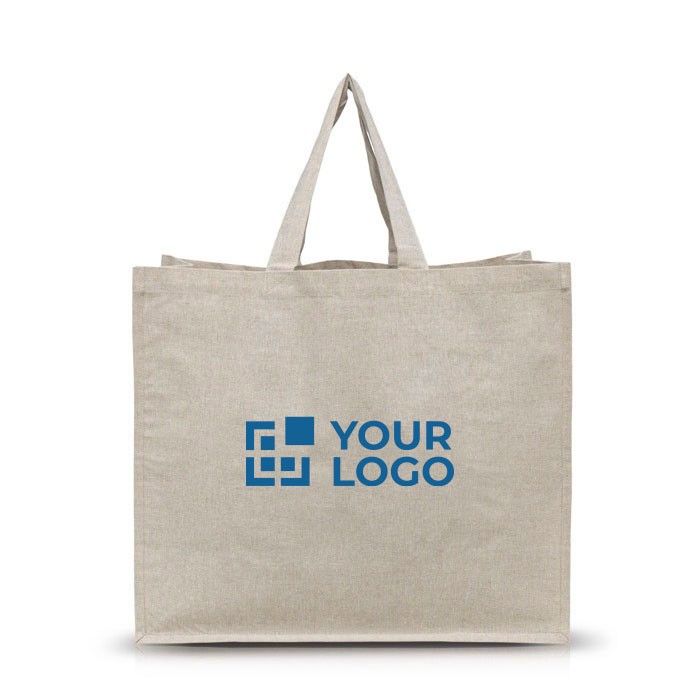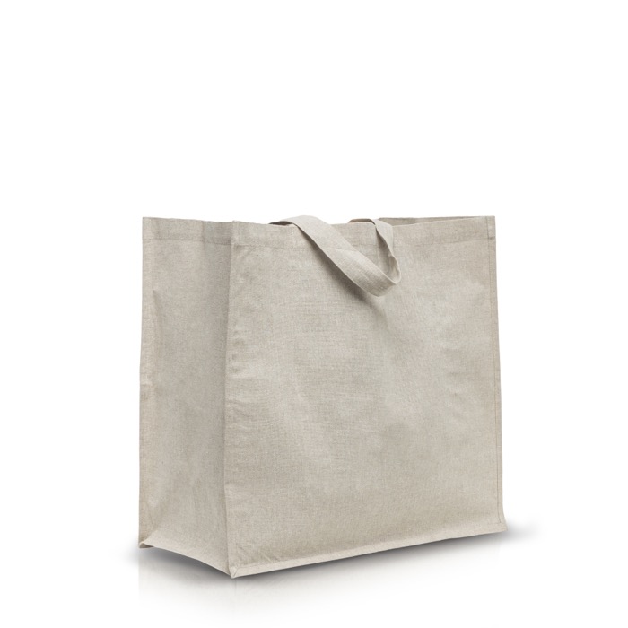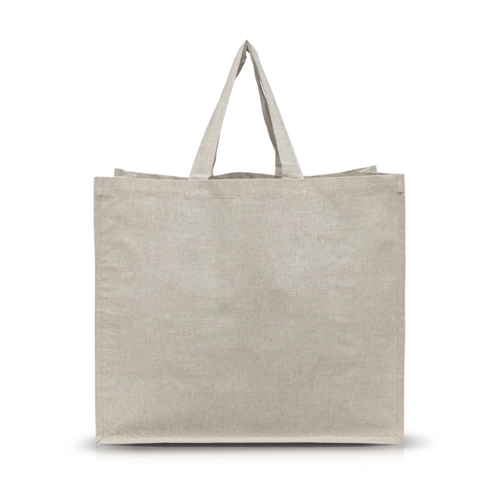 Bolsa de algodón reciclado, ideal para empresas que buscan soluciones sostenibles. Fabricada con algodón reciclado de alta calidad, esta bolsa combina durabilidad y resistencia, contribuyendo a la preservación del medio ambiente. Con dimensiones de 43 x 38 x 20 cm, ofrece un amplio espacio para organizar y proteger compras u objetos personales. Su laminado interior añade una capa de protección contra la humedad, manteniendo el contenido seco en cualquier situación. Las asas cortas facilitan su transporte, y su diseño moderno se adapta a diversas ocasiones, desde eventos corporativos hasta actividades diarias. Perfecta para empresas que desean promover una imagen eco-amigable y responsable.