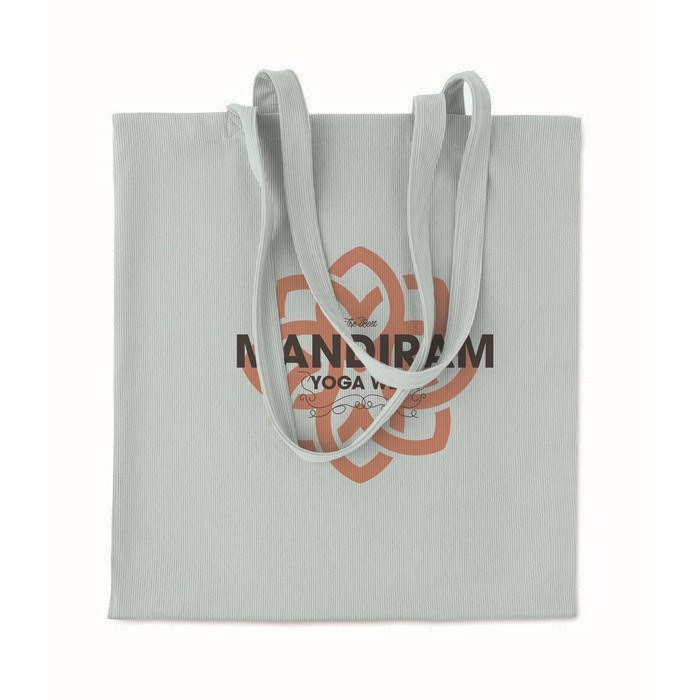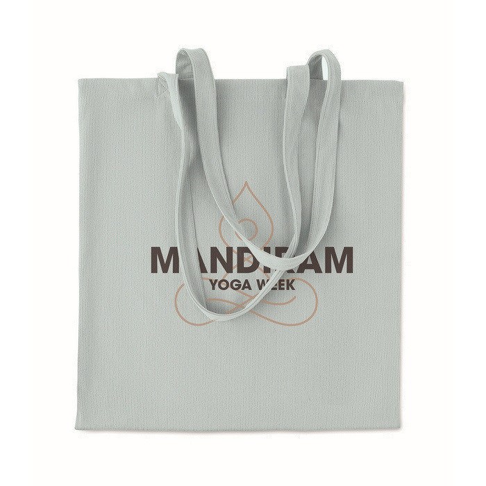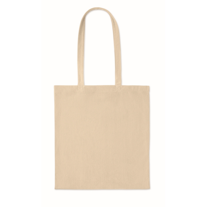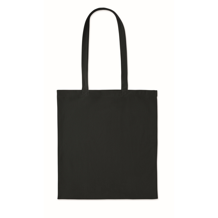 Bolsa de compra de pana de poliéster de 220 g/m², pensada para un uso diario en tiendas, eventos y oficinas. Incorpora asas largas para llevarla al hombro con comodidad y facilita el transporte de documentos, catálogos o compras. El tejido aporta una textura distintiva y buena presencia en acciones de visibilidad. Formato práctico para entregas en ferias, packs de bienvenida o como soporte de merchandising en puntos de venta y campañas corporativas.