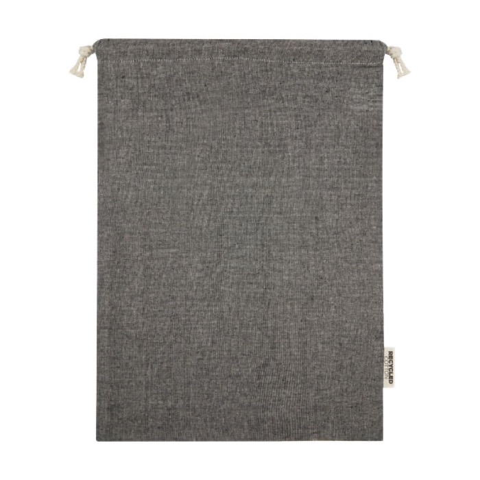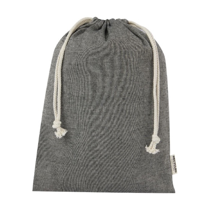 Bolsa de regalo fabricada en algodón reciclado, con certificación Global Recycled Standard (GRS), y cierre de cuerda de algodón. Sus dimensiones de 30 x 42 cm la hacen ideal para objetos más grandes, con una capacidad de 4000 ml. El gramaje de 150 g/m² asegura resistencia y durabilidad. Debido al proceso de producción, puede haber pequeñas variaciones en el color. No cuenta con embalaje individual, lo que refuerza su perfil sostenible. Además, ofrece un servicio Express para necesidades urgentes. Perfecta para empresas que buscan opciones de empaque ecológicas para eventos corporativos o promociones de productos.