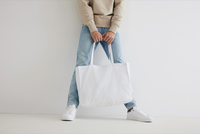 Bolsa impresa o bordada grande de algodón reciclado 145 g/m2 Waterless