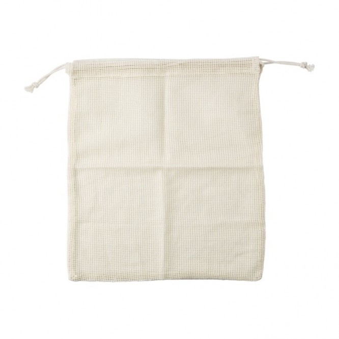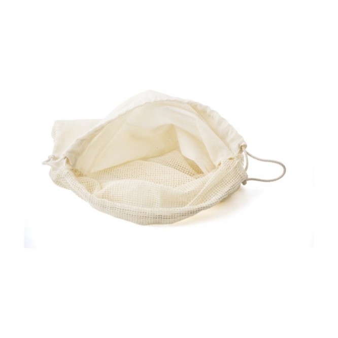 - Bolsa de algodón orgánico con rejilla lateral y cierre de cordón