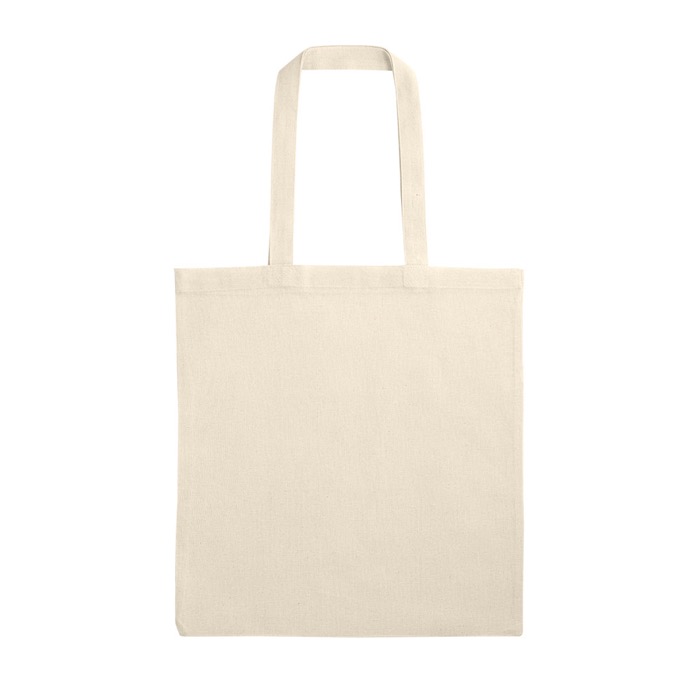 Bolsa de algodón (70%) y poliéster (30%) con un gramaje de 140 g/m². Diseñada para ser ligera y duradera, esta bolsa cuenta con asas medianas de 60 cm, ideales para un transporte cómodo. Su composición de materiales reciclados la convierte en una opción sostenible, perfecta para empresas que buscan reducir su impacto ambiental. Sin embalaje individual, lo que minimiza residuos. Además, ofrece un servicio Express para entregas rápidas. Ideal para eventos corporativos, ferias o como parte de una estrategia de marketing ecológico.
