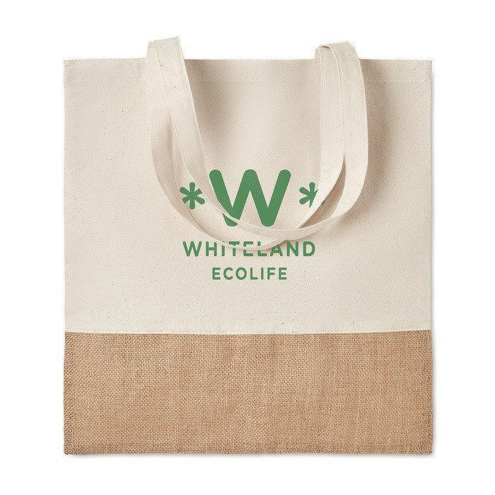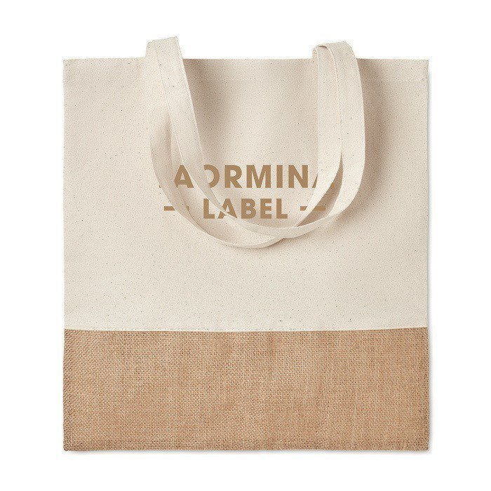 Bolsa de la compra fabricada en sarga de algodón, con un elegante detalle de imitación de yute en la parte inferior. Las asas largas facilitan su transporte, permitiendo llevarla cómodamente al hombro. Con un gramaje de 160 gr/m², ofrece una resistencia adecuada para el uso diario. Además, cuenta con un servicio Express, ideal para empresas que necesitan soluciones rápidas y eficientes. Perfecta para merchandising, esta bolsa puede ser utilizada en eventos corporativos o como parte de una estrategia de marketing sostenible, destacando por su diseño original y funcionalidad.