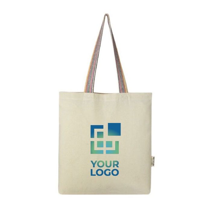 Bolsa tote de algodón reciclado con asas arcoíris para un toque vibrante