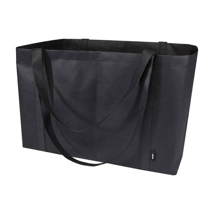 Bolsa tote de poliéster reciclado con certificado Global Recycled Standard (GRS). Ofrece una impresionante capacidad de 65 litros, ideal para transportar artículos voluminosos o pesados, con una resistencia de hasta 15 kg. Equipada con asas cortas de 24 cm y largas de 37 cm, garantiza comodidad en el transporte, adaptándose a diferentes necesidades. Su diseño plegable facilita el almacenamiento cuando no está en uso, optimizando el espacio. Además, cuenta con un servicio Express para entregas rápidas. Perfecta para empresas que buscan soluciones sostenibles para eventos corporativos o como parte de su estrategia de merchandising ecológico.