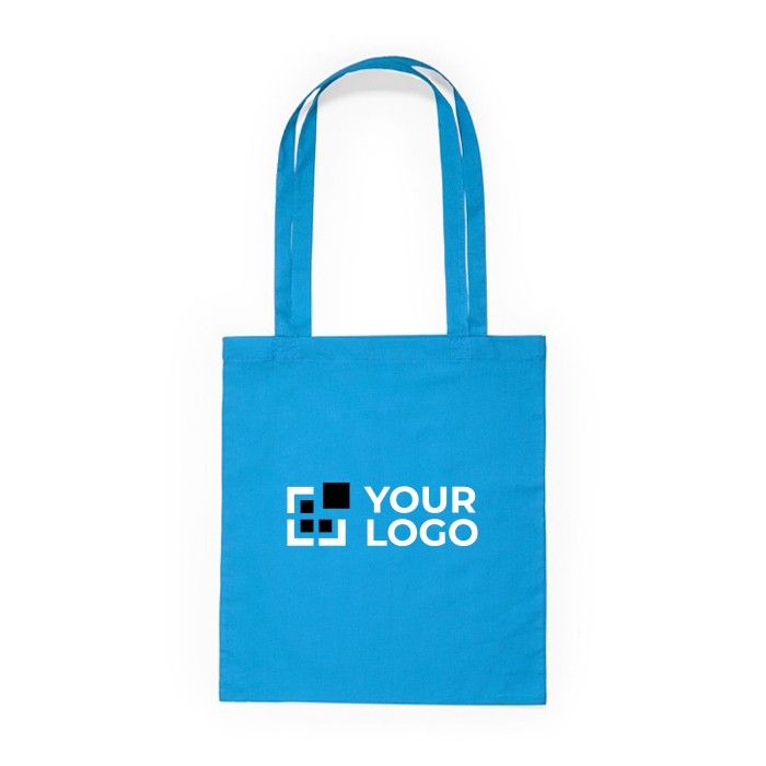 Bolsa de algodón en color, diseñada para ofrecer practicidad y estilo. Confeccionada en un tejido resistente, cuenta con asas largas de cinta que facilitan su transporte, permitiendo llevarla cómodamente al hombro. Su diseño unisex la hace ideal para cualquier tipo de usuario, adaptándose a diversas necesidades empresariales. Perfecta para ferias y eventos, esta bolsa es una opción versátil para empresas que buscan destacar su identidad de manera sencilla y efectiva. Considera su uso como un recurso promocional en conferencias o como parte de un kit de bienvenida para nuevos empleados.