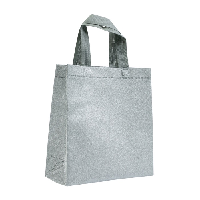 Bolsa de non-woven brillante con purpurina y correas 130 g/m2