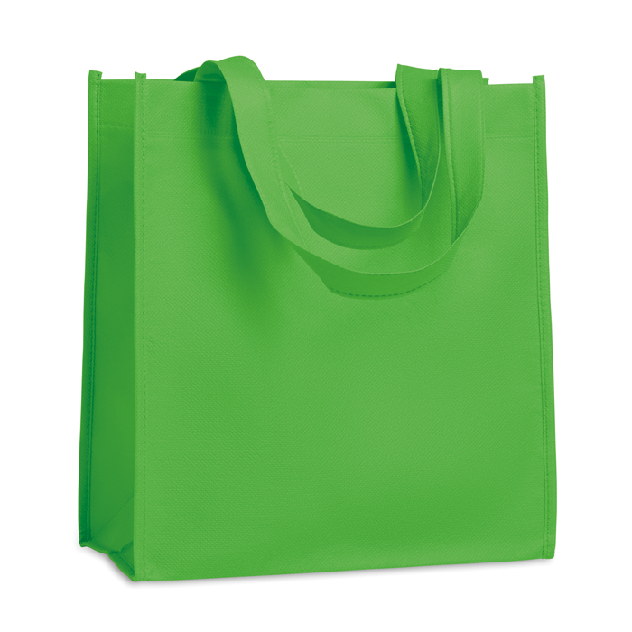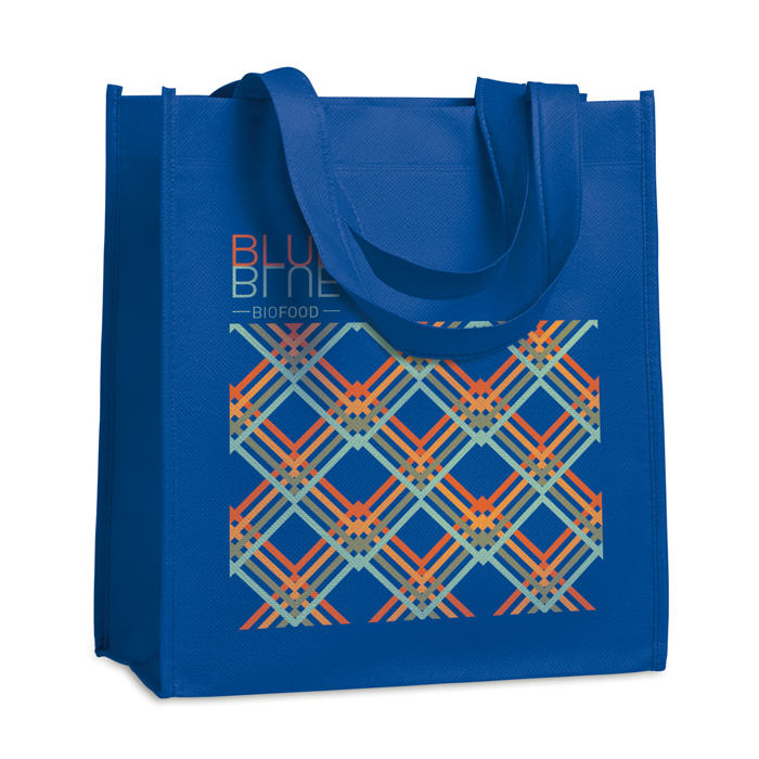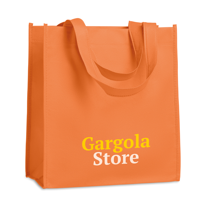 Una bolsa de la compra confeccionada en tejido non-woven termosellado de 80 gr/m² que combina ligereza y resistencia en un diseño compacto. Sus asas cortas facilitan el transporte y su fuelle aumenta la usabilidad, convirtiéndola en un accesorio práctico y muy útil tanto para la compra como para cualquier situación del día a día. Ideal para eventos corporativos o como obsequio promocional, se puede personalizar con tu logo a dos caras, incluso logrando un diseño a todo color si optas por la impresión mediante transfer digital. En otras palabras, el equilibrio perfecto entre economía, practicidad y branding. Ofrece servicio exprés para entregas urgentes.