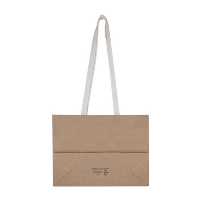 Bolsa de regalo premium grande con asas largas de algodón, fabricada en papel kraft de 150 gr/m². Este material resistente y ecológico, con certificado FSC (Forest Stewardship Council), asegura un impacto ambiental reducido. Las asas de algodón proporcionan comodidad y durabilidad, ideales para transportar productos pesados. Su diseño elegante y funcional es perfecto para personalizar con el logotipo de tu empresa, aumentando la visibilidad de tu marca. Ideal para tiendas que buscan ofrecer una experiencia de compra diferenciada, esta bolsa es una excelente opción para eventos corporativos o como parte de una estrategia de marketing sostenible.