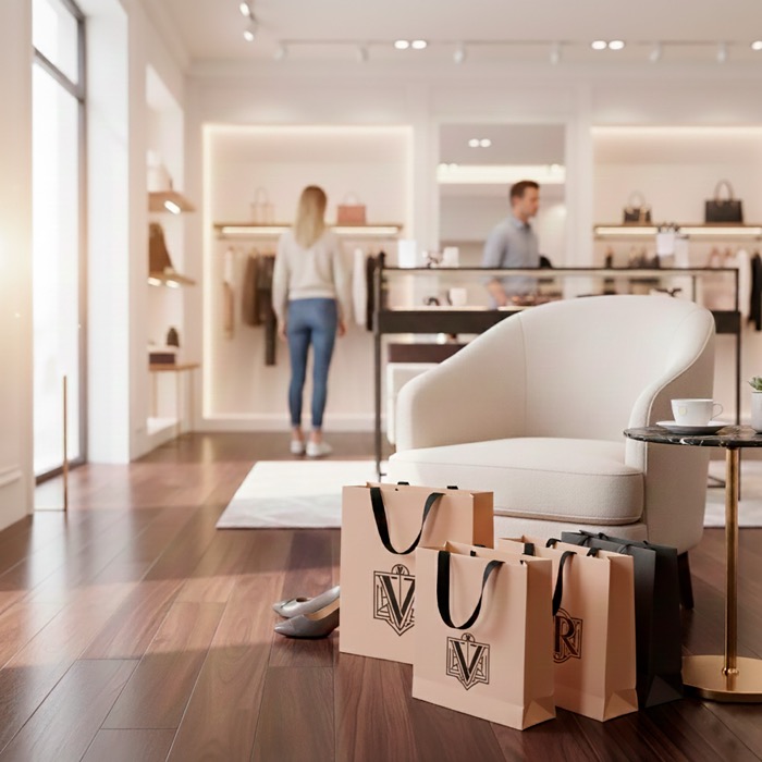 - Bolsa de papel premium mate con imagen cuidada en retail