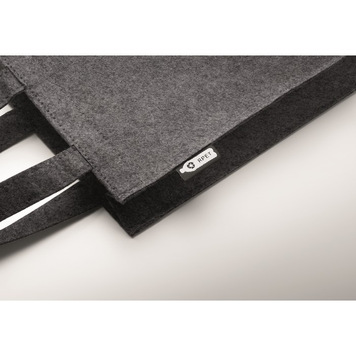 Bolsa de propaganda pequeña de fieltro RPET con fuelle y asas cortas