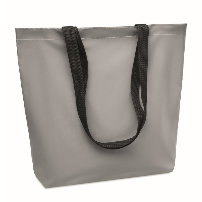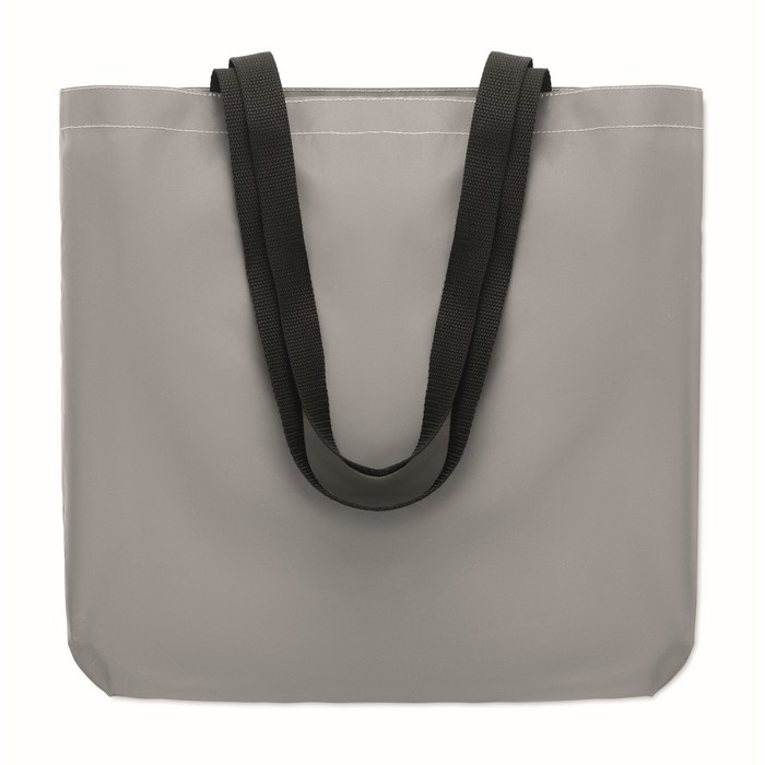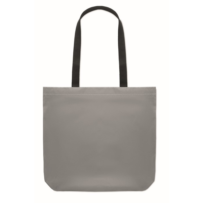 Bolsa para la compra fabricada en material reflectante (tanto cuerpo como asas), por lo que se mejorará la visibilidad en entornos más oscuros.