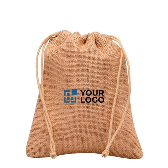 Bolsa que aúna artesanía de yute con dos lazos con tu marca impresa