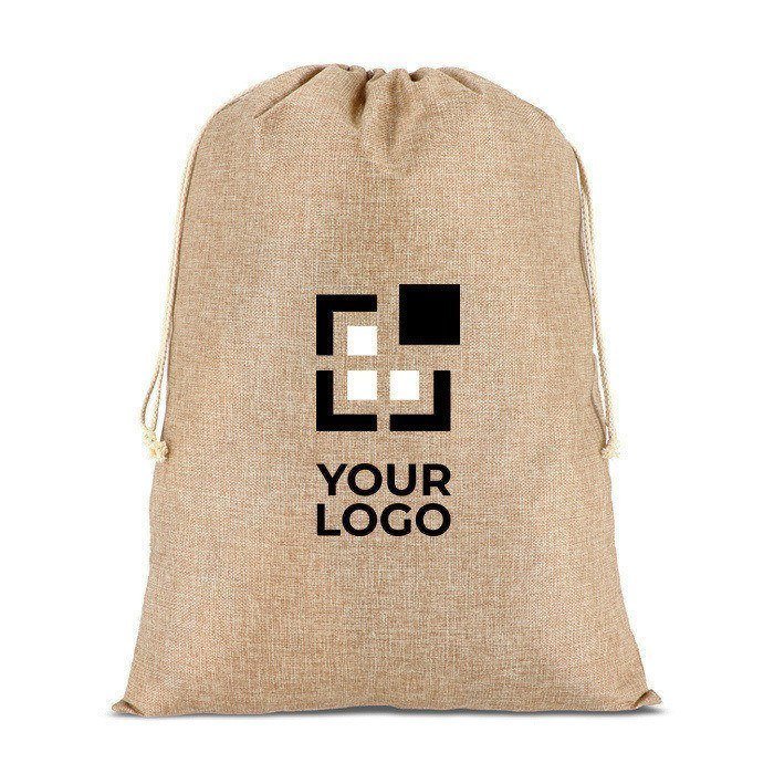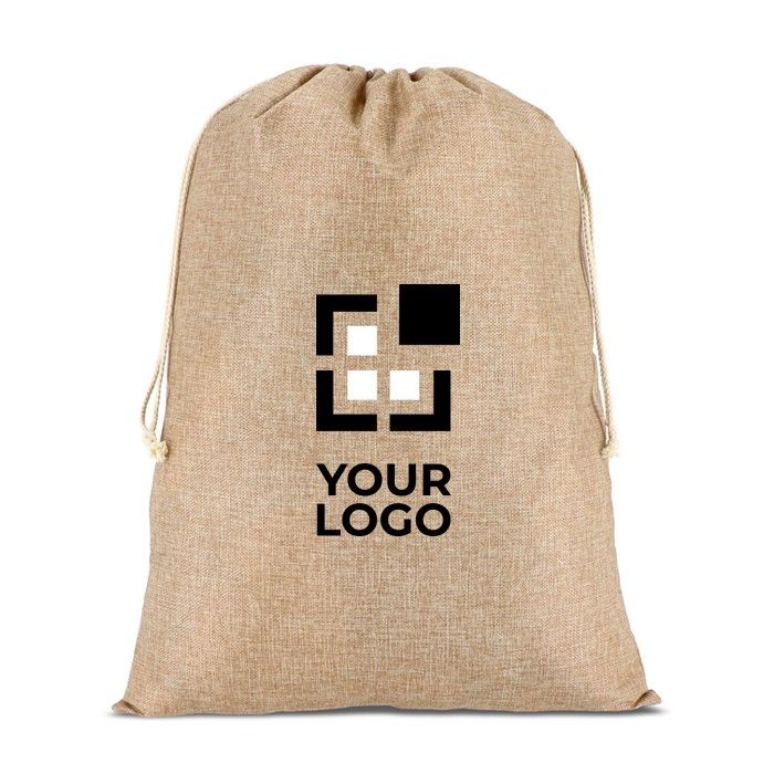 Bolsa de regalo estilo yute, fabricada con material resistente y reutilizable. Su diseño espacioso permite guardar y transportar regalos grandes con facilidad. El cordón de cierre asegura que los contenidos se mantengan seguros, mientras que el acabado rústico añade un toque festivo a cualquier celebración. Ideal para empresas que buscan una solución práctica y atractiva para empaquetar regalos corporativos o promocionales. Perfecta para eventos navideños o cualquier ocasión especial donde se desee impresionar con un empaque distintivo y funcional.