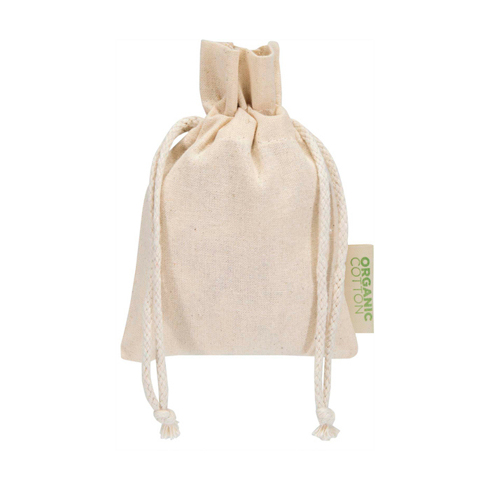 Bolsa de regalo de algodón 100% de 140 g/m² con cierre de cordón también de algodón, pensada para presentar o guardar pequeños artículos de forma ordenada. El formato 15 x 10 cm encaja bien con detalles corporativos, muestras o accesorios, y facilita la entrega en mostrador o en eventos. El certificado OCS (Organic Content Standard) ayuda a identificar el contenido orgánico del tejido cuando se requiera en compras internas. Opción práctica para acciones de marca, bienvenida a empleados o promociones en punto de venta.
