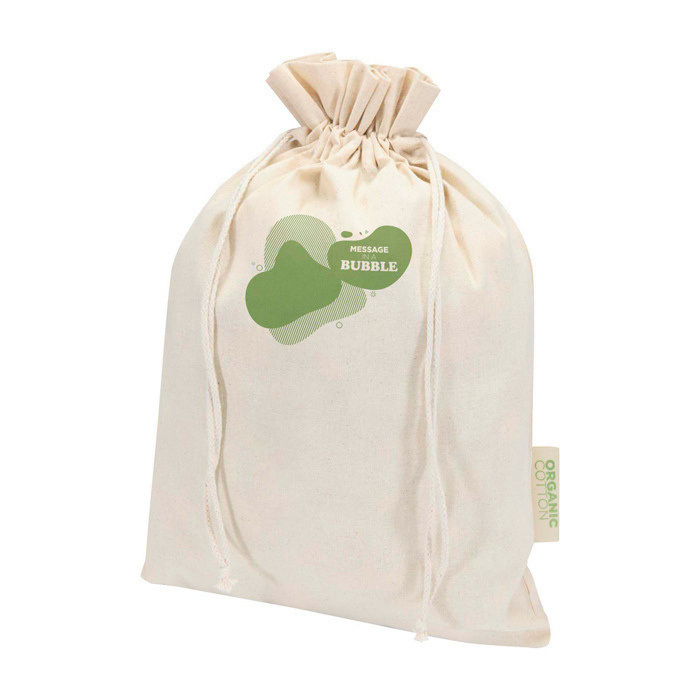 Bolsa de regalo de algodón con acabado de 140 g/m², pensada para entregar detalles o proteger artículos en el día a día. Incorpora cierre de cordón también de algodón, que facilita abrir y cerrar sin complicaciones y ayuda a mantener el contenido recogido. Su formato de 42 x 30 cm ofrece espacio suficiente para ropa ligera, documentación o pequeños accesorios. Puede personalizarse para reforzar la presencia de marca en acciones de bienvenida, eventos internos o entregas a clientes.