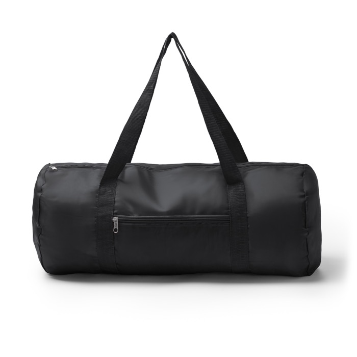 Bolsa de deporte plegable de plástico reciclado 290T, pensada para transportar equipación de forma ordenada y con poco volumen cuando no se usa. El compartimento principal incorpora cierre de cremallera para un acceso rápido y seguro. Incluye un bolsillo exterior con doble cremallera para guardar llaves, móvil u otros básicos, y además funciona como funda de guardado para plegarla. Las dos asas a juego facilitan el transporte en mano. Opción práctica para acciones de marca en eventos deportivos o viajes corporativos.