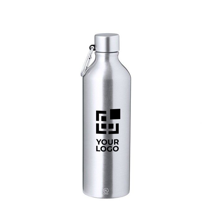 Bidón de aluminio reciclado de 800 ml con mosquetón para un transporte fácil y seguro