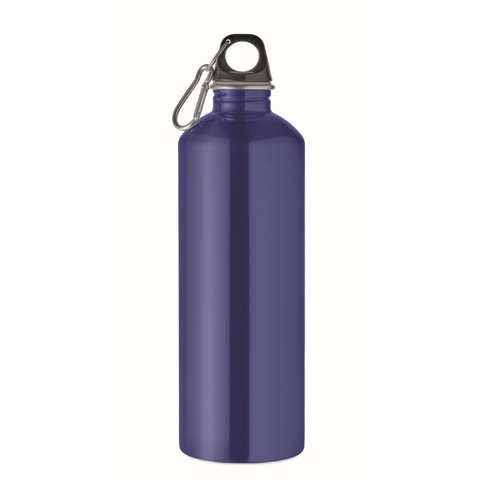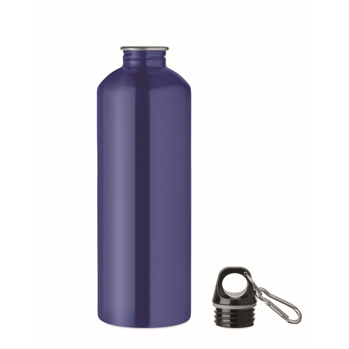 Botella de pared simple en acero inoxidable (90% reciclado y 10% acero inoxidable), pensada para uso diario en oficina o en desplazamientos. Incorpora tapa de PP con mosquetón para colgarla de una mochila, una bolsa o un gancho de almacén. La capacidad de 1000 ml ayuda a reducir recargas durante la jornada. Al ser de pared simple, puede haber transferencia de calor con bebidas frías o calientes. Opción práctica para kits de bienvenida o eventos corporativos.