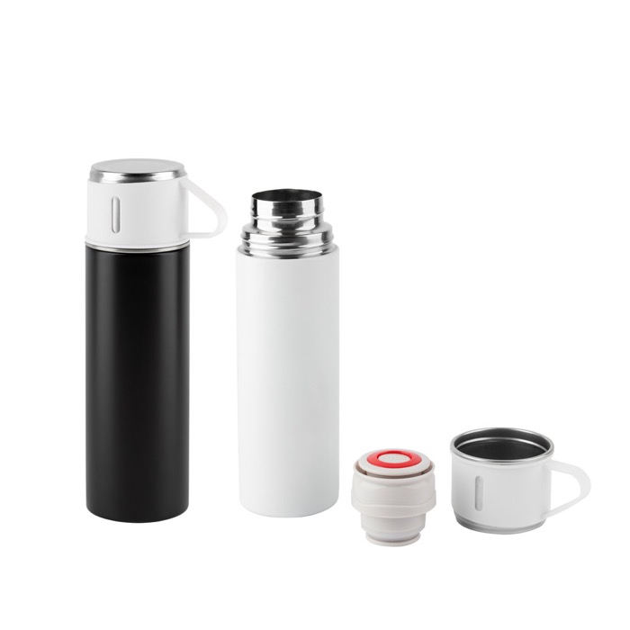 Botella de acero inoxidable de doble pared, fabricada con un 90% de material reciclado, y acabado mate. La tapa, también de acero inoxidable con acabado mate frost, se transforma en un vaso de 140 mL, ofreciendo versatilidad en su uso. Con una capacidad total de 490 mL, esta botella es ideal para mantener la temperatura de las bebidas, gracias a su función térmica. Se entrega en una caja kraft, lo que facilita su almacenamiento y transporte. Además, cuenta con un servicio Express para entregas rápidas. Perfecta para empresas que buscan soluciones prácticas y sostenibles para eventos corporativos o regalos promocionales.