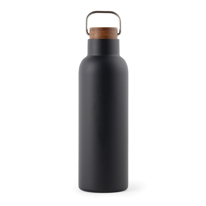 Botella de acero inoxidable reciclado con tapa de madera y asa 800ml