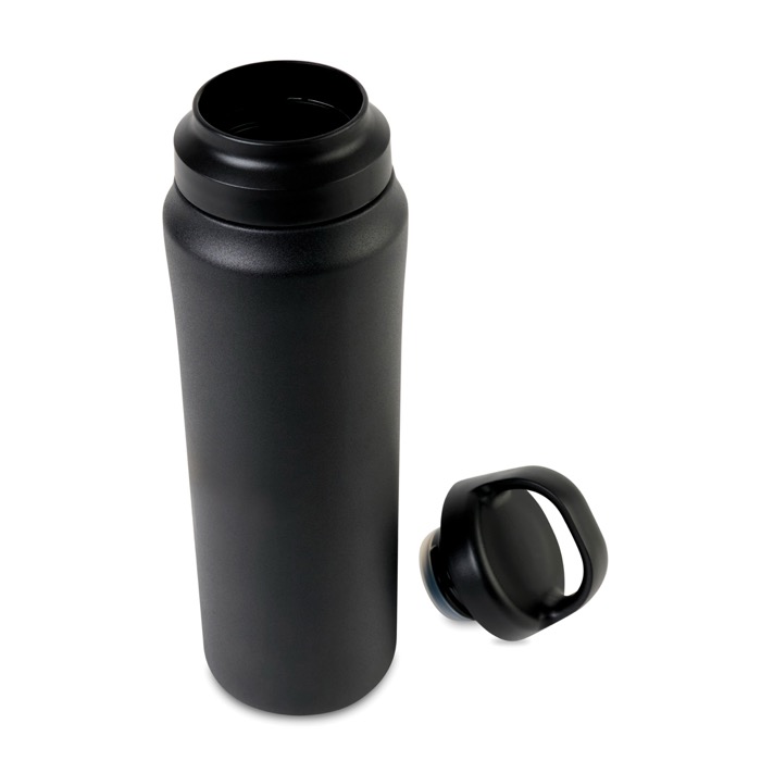 Botella fabricada en acero inoxidable reciclado 18/8, con certificación Recycled Claim Standard (RCS), diseñada para mantener la temperatura de las bebidas durante más tiempo gracias a su aislamiento al vacío de doble pared. Su acabado resistente al sudor asegura un agarre cómodo y seco. La tapa de dos piezas permite elegir entre un flujo amplio o estrecho, adaptándose a diferentes preferencias de consumo. Con una capacidad de 470 ml, esta botella es antigoteo y mantiene las bebidas calientes hasta 10 horas y frías hasta 18 horas. Se presenta en una elegante caja de regalo, ideal para obsequios corporativos o campañas de marketing sostenibles.