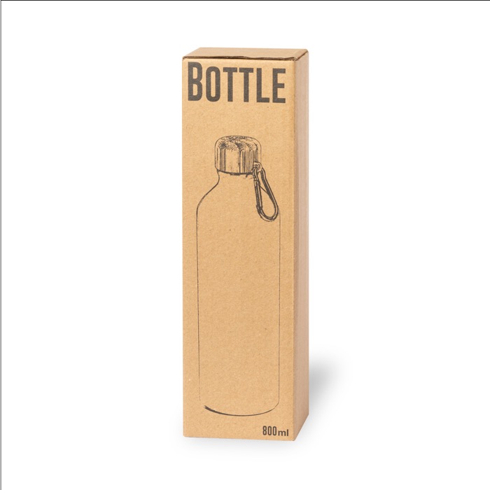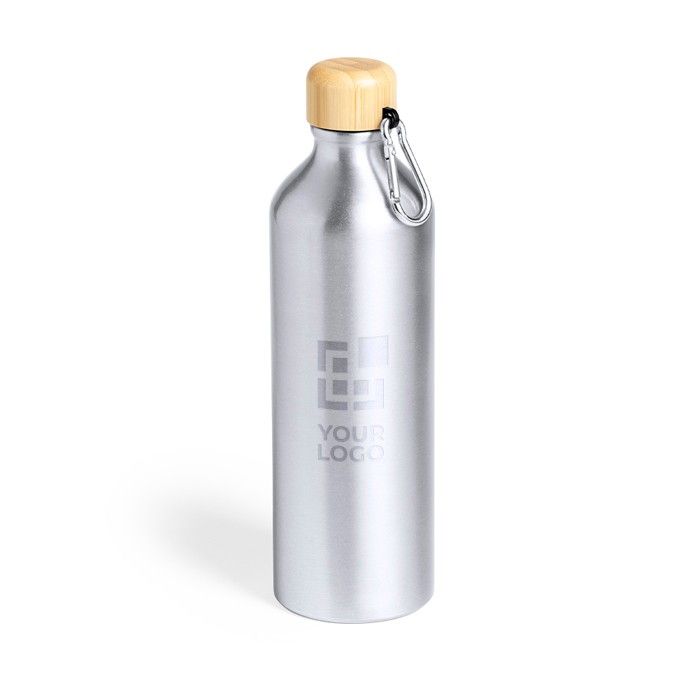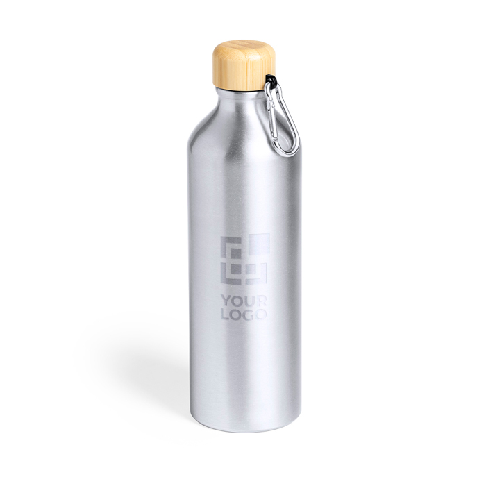 Bidón de aluminio con acabado mate, diseñado para una capacidad de 800 ml. El tapón de bambú incluye un mosquetón a juego, facilitando su transporte en cualquier entorno laboral. Libre de BPA, este bidón asegura que el contenido se mantenga seguro y libre de contaminantes. Presentado en una caja de diseño eco, es una opción sostenible y atractiva para empresas que valoran la responsabilidad ambiental. Ideal para eventos corporativos, regalos promocionales o como parte del equipo de trabajo diario, ofreciendo una solución práctica y elegante para la hidratación en el entorno profesional.