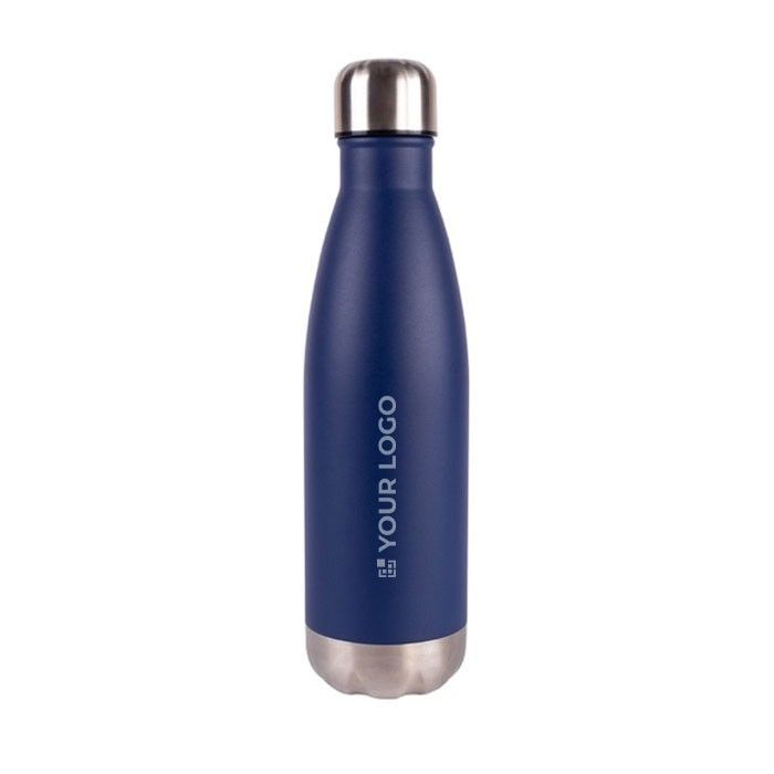 Botella de 550 ml fabricada en acero inoxidable 304 reciclado, ideal para empresas que buscan productos sostenibles. Su diseño elegante combina el color del cuerpo con una base y tapón plateados, ofreciendo una estética moderna y profesional. Mantiene las bebidas calientes durante 6 horas y frías hasta 12 horas, lo que la hace perfecta para reuniones de larga duración. No es adecuada para bebidas carbonatadas o ácidas, asegurando así su durabilidad. Ideal para personalizar con el logo de la empresa y utilizar en eventos corporativos o como regalo para clientes y empleados.