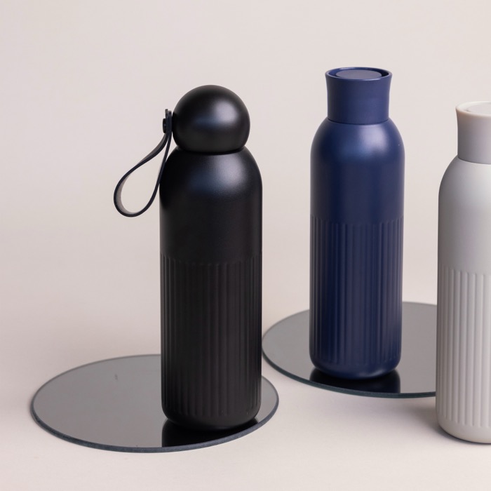 Botella térmica de acero monocromática con tapón redondo con asa 500ml