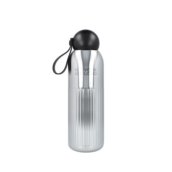 Botella de acero reciclado galvanizado con acabado cromado y diseño de rayas verticales, pensada para un uso diario en oficina o en desplazamientos. Su aislamiento al vacío con recubrimiento de cobre ayuda a mantener la bebida caliente hasta 12h o fría 24h, sin condensación exterior. Incorpora tapa redonda de plástico reciclado y pajita desmontable para beber con comodidad. El cierre antigoteo reduce derrames en mochila o maletín. Apta para lavavajillas. Buena opción para merchandising corporativo con logo en eventos.